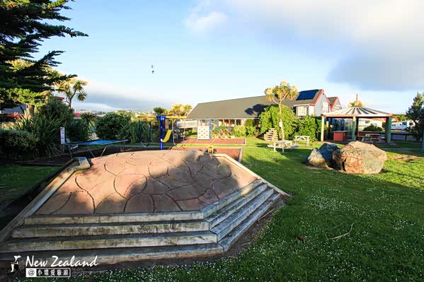 行程目的地一般先设定当晚住宿城市或小镇在哪里,那边的汽车旅店是哪家,然后沿途一路玩下去。此次行程我们基本以Holiday Park?汽车营地为主要住宿地点。新西兰的汽车营地上班时间是有限的,早上8点至下午4点,4点以后基本就下班了,而大部分营地的大门是敞开的,即使4点前无法赶到,也不要紧。公共设施如厨房、浴室都是公共开放的,只要有车位电源座也可以自行使用,加水排水也是一样。只是别做小偷小摸的事情,趁着下班后进营地第二天上班前出营地,这种行为在当地就叫偷窃。借汽车营地住宿一晚一个人15至20纽币左右,一切都靠自觉,即使你出发很早,每个营地都会有收住宿费的柜子或箱子,将留宿的前放进去,谢谢小营地为我们提供的一切。