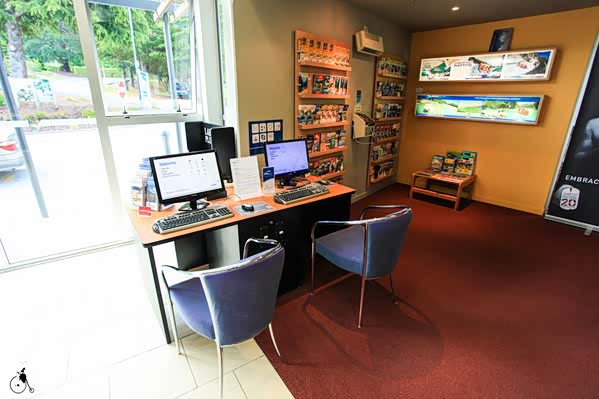 ▲进入大堂到办理柜台登记,随后在一旁的休息区等待相应语言的服务人员为您办理租赁手续,由于这里的工作人员并不多,而且每接待一组客人并讲解房车使用知识等,需花费一至