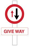 1)如图,如果标志上是左边红色箭头,表示你必须无条件给对面来车让行;