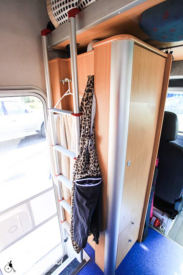 ▲迷你淋浴浴室、马桶和折叠水斗都在狭小的空间里,井井有条无不干涉,但一般不会用,清理比较麻烦。沿途有许许多多的公共厕所,房车营地也有很大的浴室。为了车内空间大一些,把箱子堆在了这里。