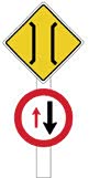 2)如图,如果标志上是左边白色箭头,表是你有优先通过权(确认桥上无对面来车);