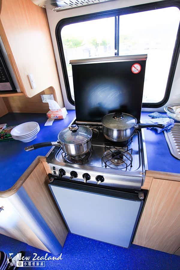▲冰箱上是燃气灶,是使用燃气罐的,在途中可以随意使用不受限制。如果燃气罐用完了,可以在加油站购买。但一罐燃气罐能用多久我真不清楚,因为我们九天行程只有午餐是在半路开灶解决的,早晚餐都是在营地厨房做的,所以全程下来一罐燃气罐并没有用完。