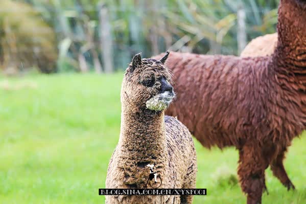 ▲新西兰的羊驼很萌,胆子也很大,在所有绵羊跑得远远的时候,羊驼会想你走近几步,打探情况,然后注视着你的一举一动。头的方向永远是一致的。