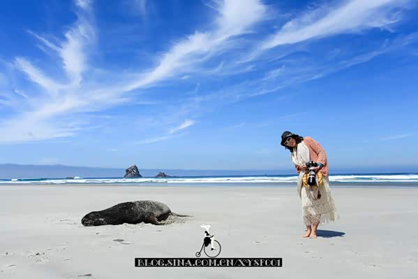 ▲白蛉湾或者称为飞沙湾(Sandfly Bay)是免费看海豹最棒的地方,坡上有成群绵羊在广阔牧场觅食,近45度的白沙从山坡连绵到海湾,这里的海豹很慵懒晒太阳,时不时翻个跟头打打哈气。这是最近距离的观察野生海狮,个头真的很大,站在旁边有点怕怕的。