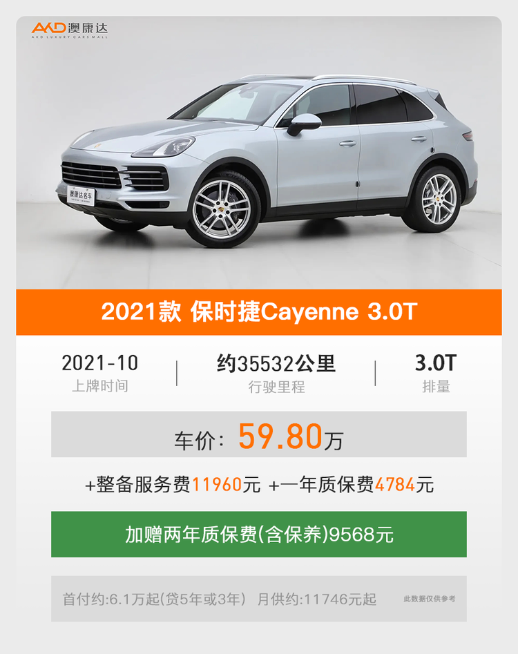 目前澳康达在售这台2018款保时捷卡宴,行驶了仅3.5万公里,售价59.80万,选配了前排座椅通风按摩、电吸门、BOSE音响等豪华组件,同时保时捷的品牌溢价和超高保值率也是不可忽视的优势。