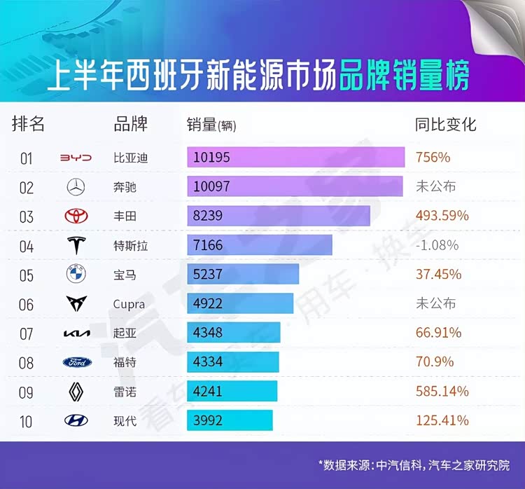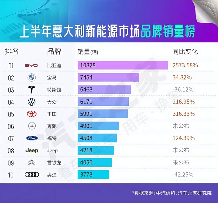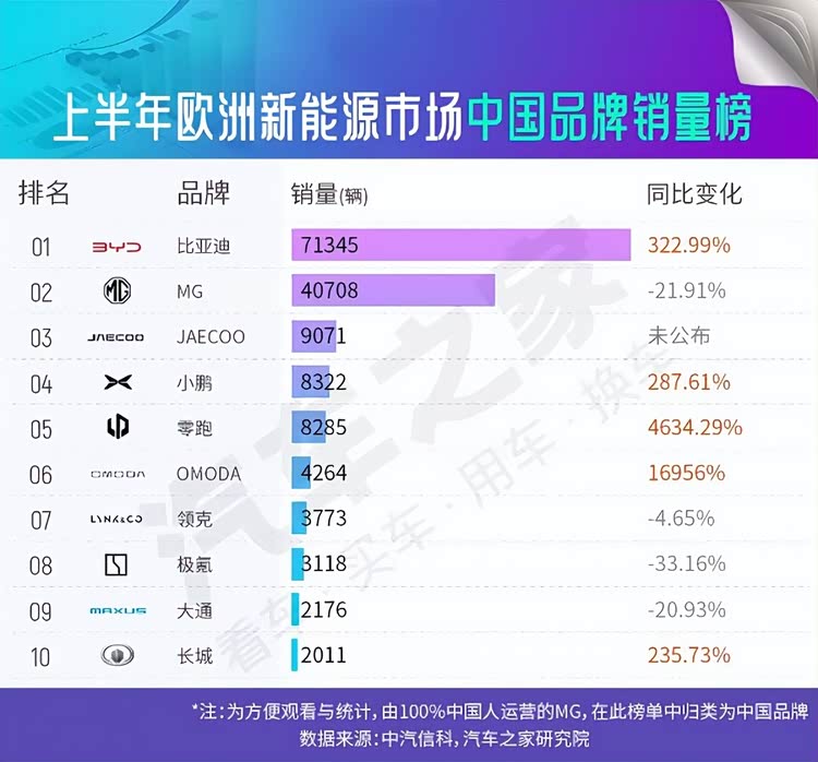 2025年开始,中国新能源的战场逐渐开始向海外转移,但是在一些成熟的汽车工业地区,比如说欧洲市场,仍然是海外品牌占据主导,中国品牌想要站稳脚跟乃至取得好成绩,相当考验中国新能源车的实力,那咱们的中国新能源车在欧洲表现如何呢?最近一份来自权威汽车平台的榜单被曝光,数据正是中国新能源品牌在欧洲市场上半年的销量,值得注意的是,在国内市场销量出色的比亚迪,欧洲市场的表现同样很亮眼。
