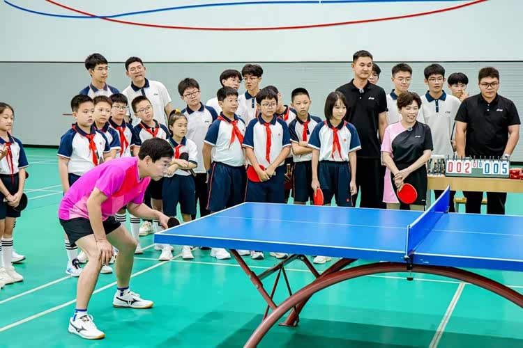 交车仪式后,魏建军邀请邓亚萍走进校园,与孩子们一起打乒乓球。这一幕温馨而动人。孩子们起初有些拘谨,但在两位“老师”的鼓励下,很快放开了手脚。魏建军化身“魏助教”,蹲下身来,用简单易懂的语言教孩子们握拍姿势和基本动作。他并不急于展示自己的球技,反而更注重引导孩子们享受运动的乐趣。在与学生的对打中,他还主动“让球”,让孩子们体验到成功的喜悦。这种亲和力,打破了人们对企业家高高在上的刻板印象,让人看到了一个真实、温暖、有温度的魏建军。