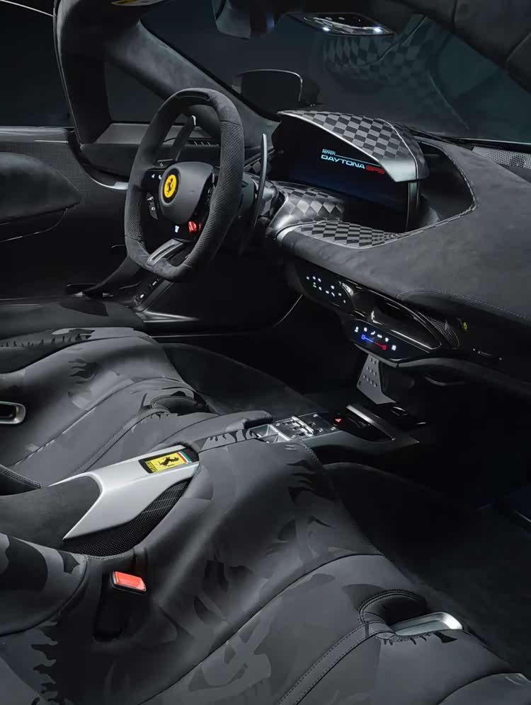 内饰整体选用由再生轮胎制成的名为“Q-Cycle”的可持续织物,黄色安全带及跃马徽标刺绣图案成为点睛之笔。仪表盘和转向柱则甄选源自F1赛车的碳纤维材质制成,进一步彰显了新车与法拉利赛道基因的紧密联结。