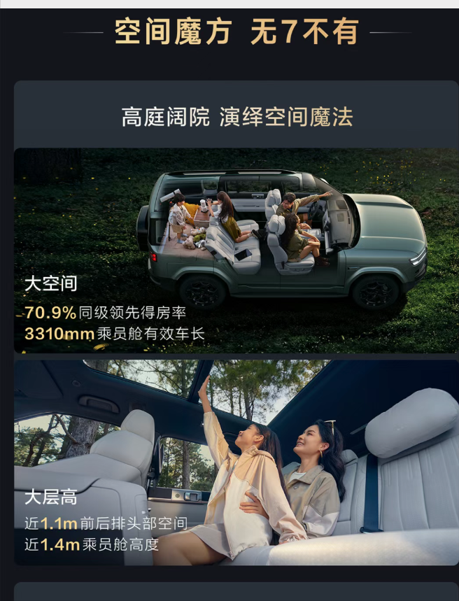 钛 7 定位为中大型 SUV,轴距达到了 2920mm,采用大五座布局。后排腿部空间达 980mm,比豹 5 的 850mm 多出 130mm。身高 185cm 的乘客坐在后排,膝盖距离前排仍有 2 拳左右的余量。