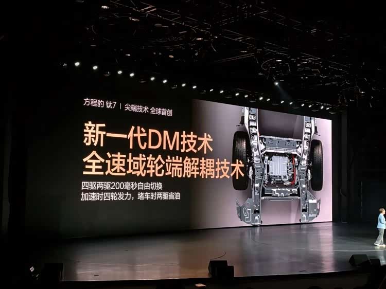 钛7搭载的全速域轮端解耦技术能够在200ms内无感切换两驱或四驱,能够按照当前路况和场景的需求提供相应的动力输出,用新科技给钛7这款方盒子SUV赋能优秀的能耗与续航水平。