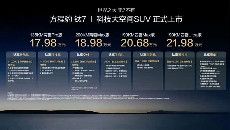 或许一切都有迹可循,让钛3和元PLUS处于同价位可能就是「钛」的一次试水,而钛3的卖爆也为今天的钛7打下了基础。