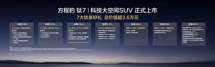 近日,方程豹“钛”系列第二款新车—— 钛7(参数|询价)正式上市,共推出4款配置,售价区间为17.98-21.98万元。新车采用承载式车身设计,并且新车搭载新一代DM平台、前双叉臂后五连杆悬架、云辇-C智能阻尼车身控制系统、天神之眼-B辅助驾驶激光版。高配车型可选灵鸢智能车载无人机系统和比亚迪新一代智慧生态。
