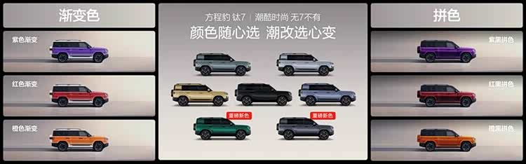 车身尺寸方面,该车长宽高分别为4999/1995/1865mm,轴距为2920mm,接近角/离去角分别为24/25度。此外,该车将提供七款外观配色,并提供多款潮改方案供消费者选择,选择非常丰富。