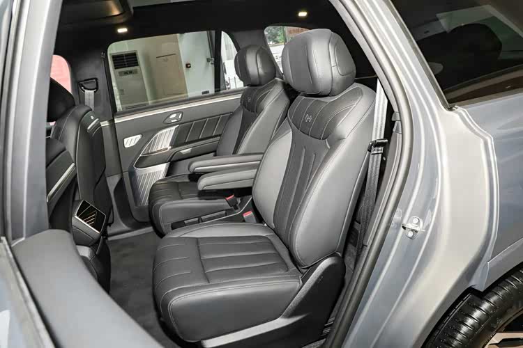乐道L90的尺寸是三车中处于上游的选手,轴距也超过了3.1米,6/7座布局下,三排座椅都能用不错的乘坐空间,7座的配备也填补了大七座新能源SUV市场的空白。而且由于没有发动机和油箱占据车身空间,所以它还拥有240L容积的前备厢,可以辅助后备厢装载更多的物品。