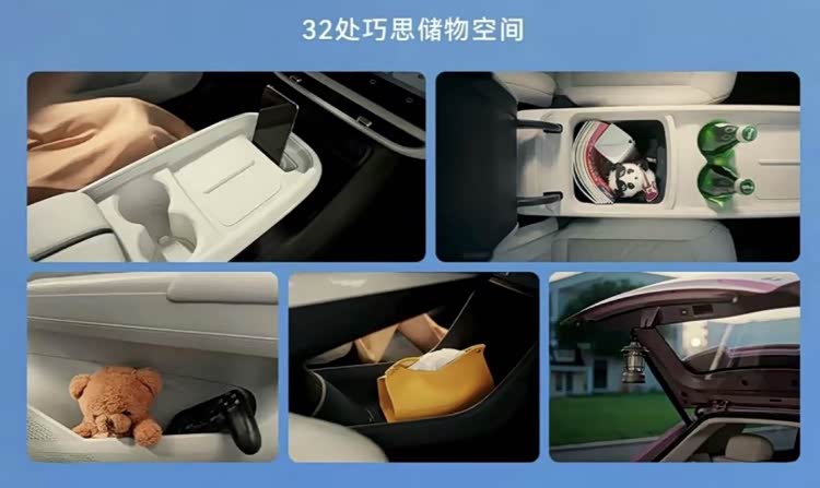 空间魔法玩得飞起,别看是A0级身材,2770mm轴距比部分B级车还长!周琦实测能伸直1米8大长腿,五口之家出行毫无压力。坐满5人后备厢还能塞8个登机箱,后排放倒纵深1.95米变1352L巨无霸,帐篷鱼竿随便装。前排一键放倒秒接后排,秒变2米“星空大床”,抬头就是同级最大2.34㎡全景天幕(带99.9%紫外线遮阳帘),全车32处储物心机——门板藏雨伞、隐藏挂钩挂早餐,活脱“带轮子的百宝箱”。