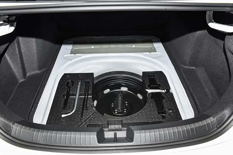 第二排座椅支持4/6比例放倒,完全放倒之后,整个后备厢容积会有进一步的增长,虽然椅背带来的台阶形状规整度一般,但搬运一般的长条大件物品也没啥问题。后备厢的底板下放置了一条非全尺寸备胎,还带有随车的工具,现在这个时代,还能给你备胎的确实很不常见了。