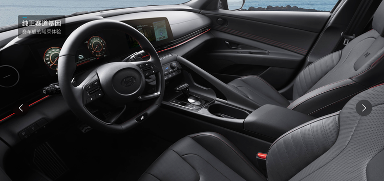 车内的方向盘同样是 N 专属的,采用真皮包裹,握感舒适,上面的多功能按键布局合理,方便驾驶者在驾驶过程中操作。换挡杆也经过精心设计,操作起来手感极佳。车内大量运用了红色缝线进行装饰,座椅、车门内饰板、方向盘等部位都能看到,这些红色缝线就像一条条流动的血脉,为车内注入了强烈的运动气息。