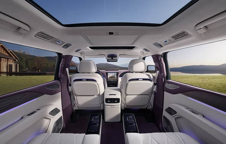 车内空间主打“移动行政舱”概念,二排双零重力座椅支持150°躺角和18点按摩,三种专属模式可切换观影、休憩或沙发床形态。全车配备丹拿32扬声器音响、五温区空调及智能香氛系统,21.4英寸折叠吸顶屏与四屏联动带来沉浸体验。设计上融合“鼎”文化元素,曜石黑配日曜金等黑金车漆采用战国黑漆描金工艺,内饰以庐山为灵感,柚木饰板经27道手工打磨,搭配Nappa真皮和麂皮材质,细节处尽显东方意境。
