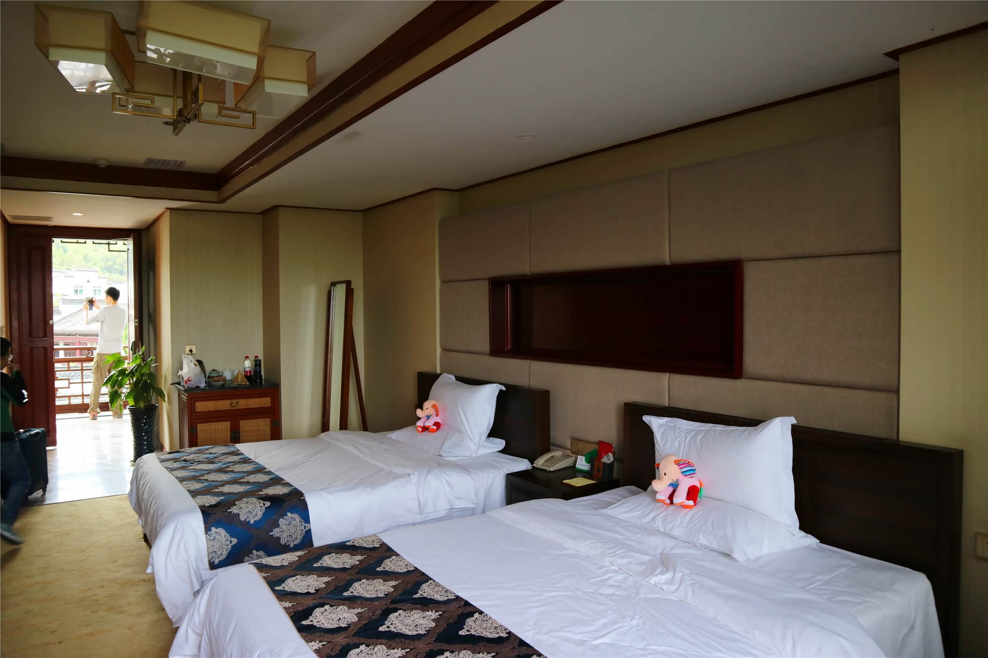 因为住的是两大一小,孩子大了,怕1.8米床住不下,我们订的是双床间,打开房门被两张1.5米的大床惊喜到了,这下完全不用担心了。床上还放了酒店的吉祥物——两只小象,我家小朋友很喜欢,我在前台看到有出售,不过价格不算太便宜,要58一只。