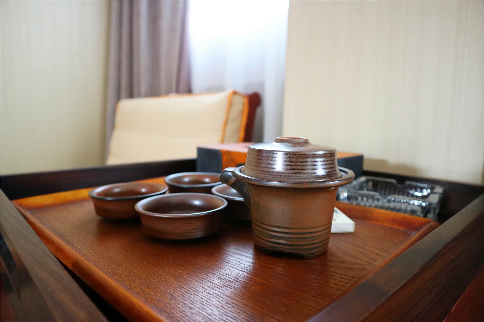 茶几上放着茶具,坐在窗前品一壶茶真的是种好享受,酒店还给入住的客人贴心的准备了当地特色的小点心,小朋友喜欢齐云山枇杷糕,酸酸甜甜的,老公喜欢笋豆。