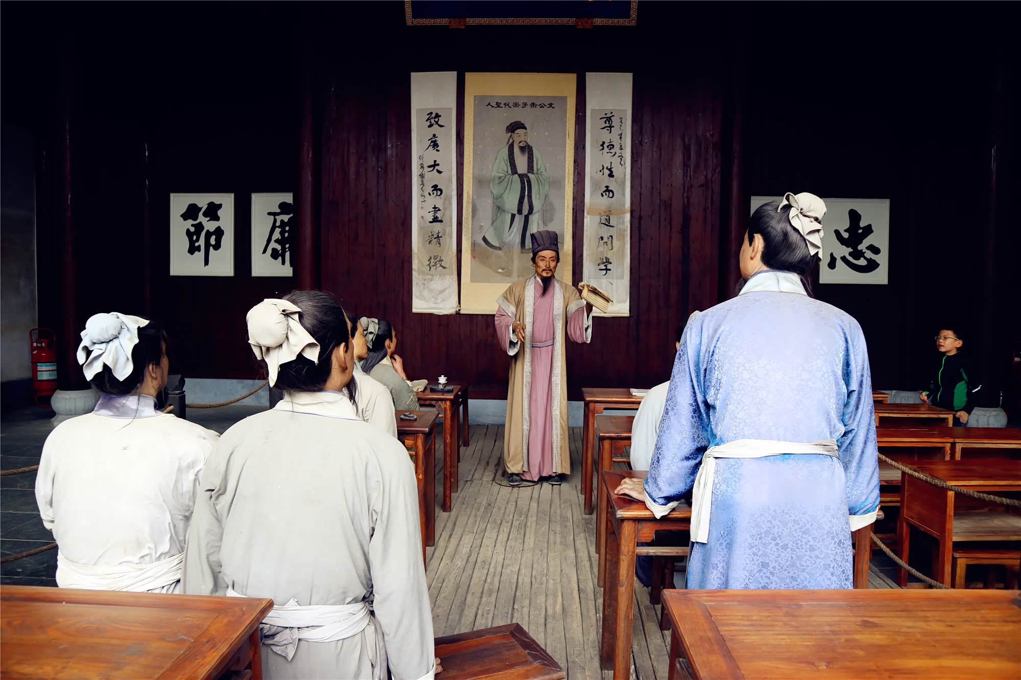 紫阳书院内完美展现了朱熹讲学的场景,蜡人雕塑得非常逼真。