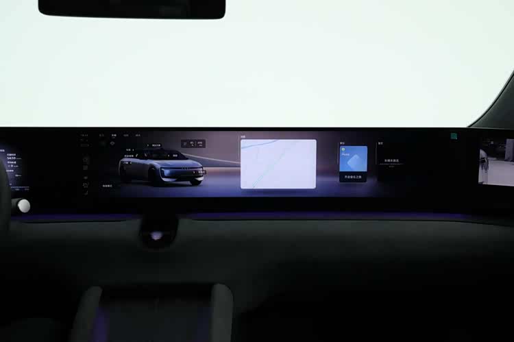 等来到车内,依然是满满的未来感!12.3英寸液晶仪表+27英寸中控屏,贯穿式的广域屏能够贯穿前舱,无论是主驾还是副驾都很方便观看屏幕和操作,屏幕之间也能无缝。实用性和体验感都上来了。