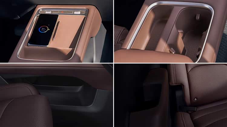 不仅如此,星光730在空间细节处亦有巧思。全车25处人性化储物空间,贯穿式储物盒可放下随身出行的包包;前中后排杯托归置一家人的饮品;前排地图袋、后排储物盒、左右衣帽钩、专属手机台设计(支持50W无线快充)等,让物品放置有序,随时保持整洁。