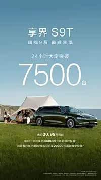 9月16日, 享界S9T(参数|询价)如约上市。截至目前,新车上市24小时,销量一举超过7500台。对于享界S9T,鸿蒙智行给足诚意,30.98万元的起售价加上首销限时至高60000元权益,可谓购车福利拉满!