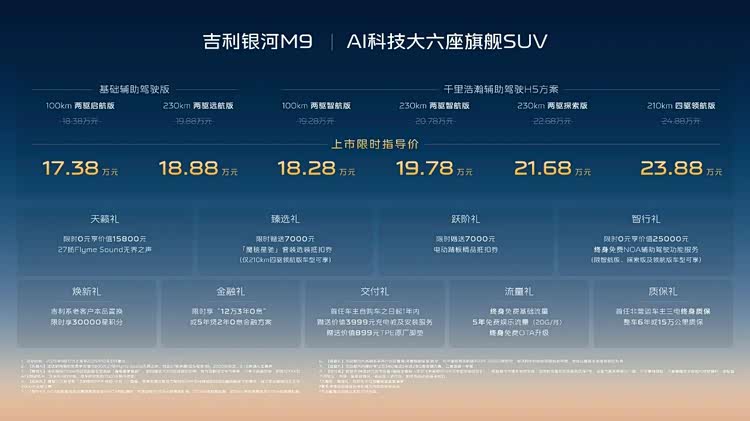 吉利银河M9上市了,6款车型,限时指导价17.38万到23.88万元!