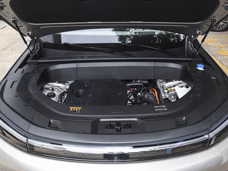 接下来看看动力,这也是银河M9的亮点。它搭载的是搭载雷神EM-P AI电混系统,匹配3DHT Evo电驱变速器,其中1.5T发动机热效率高达47.26%,最大功率120kW,最大扭矩255N·m,并且提供单电机两驱版和三电机四驱版。两驱版电机最大功率180kW,最大扭矩350N·m,系统最大功率300kW,系统最大扭矩605N·m,零百加速7.3秒。此外,两驱版提供18.4kWh和41.46kWh的磷酸铁锂电池,对应CLTC纯电续航为100km和230km,综合工况续航为1325km、1500km,CLTC百公里馈电油耗分别为5.7L、5.6L。