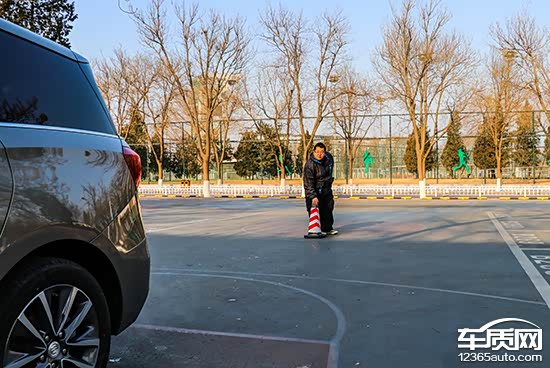 在测试前方视野阶段,我们采用高70cm的桩桶作为参照物,随后调整车距,直至在主驾席可以看到桩桶上沿。