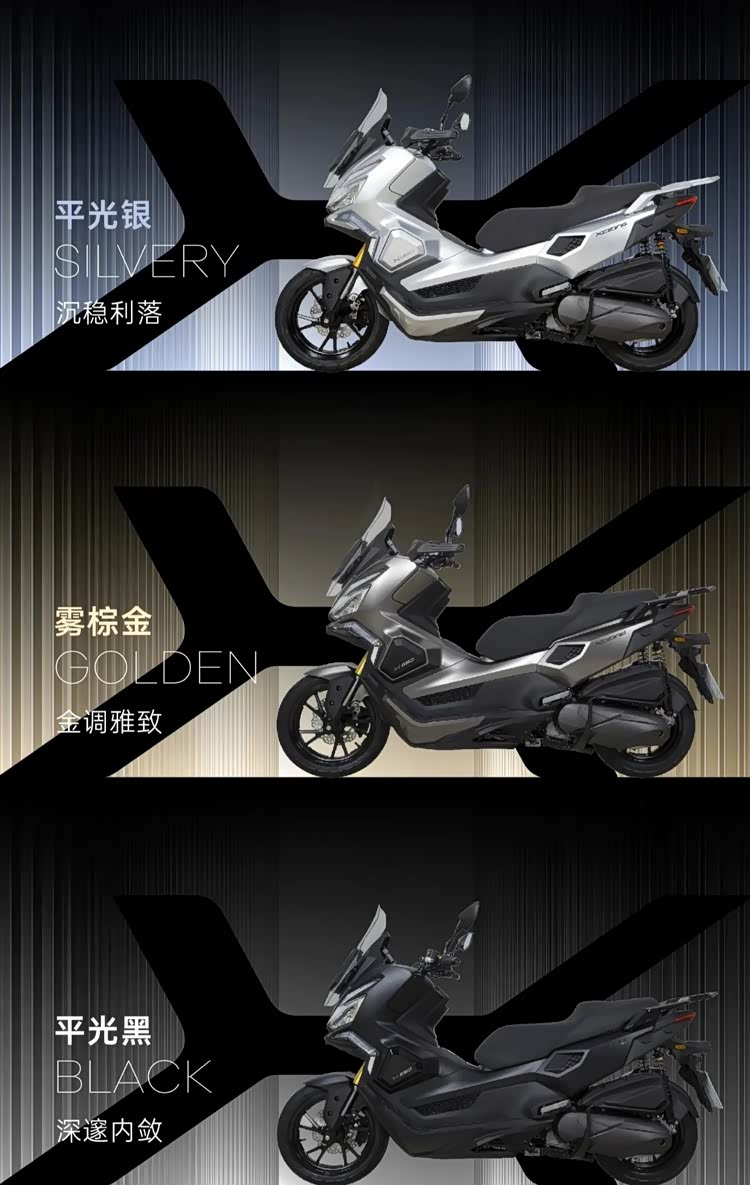 X350豪华版整体外观和三大件基本没变,但会有平光银、平光黑、雾棕金三个涂装可供选择,其主要看点如下:
