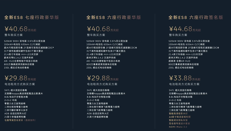 车家号·0浏览·2025-09-21 01:23 · 安徽等等党又赢了!蔚来全新 ES8(参数|询价)价格正式公布——整车买断价40.68万元起,相比老款下调超过8万元,BaaS电池租用方案更是低至29.88万元起,直接再省下超10万元!去年还要50万+的豪车,现在直接省出一辆代步车钱!