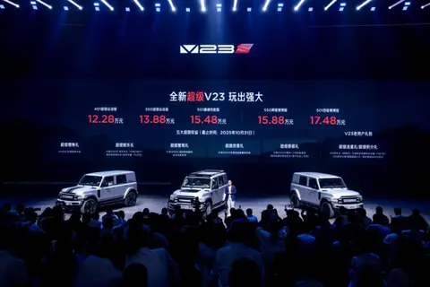 V23自上市以来,凭借极致风格风靡市场,一举成为2025年1-8月新能源方盒子累计销量冠军。全新超级V23更进一步,围绕“超级性能、超级操控、超级越野”等核心维度进行脱胎换骨全面进化,以超级产品极致价值,满足用户极致乐趣。