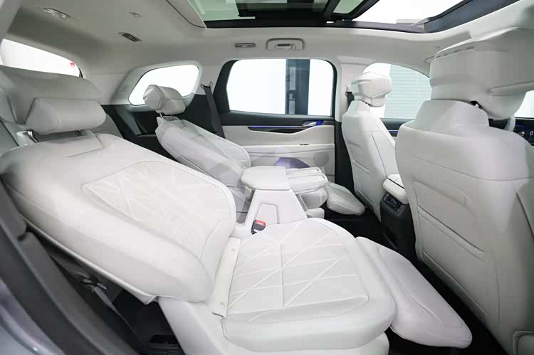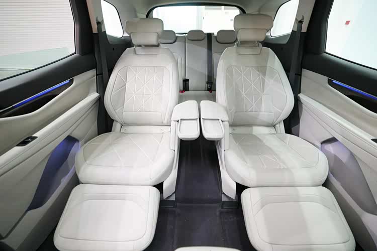 •二排座椅本身是 “头等舱级”——2-2-3 布局下,二排通道宽 200mm(比很多 MPV 还宽),老人孩子进出第三排不用弯腰;还能一键调到 “座椅后倾 41°、腿托抬起 50°” 的近零重力模式,长途坐久了也不腰酸;