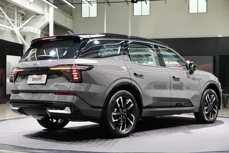 动力架构提供燃油与混动双选择。燃油版搭载 2.0T EcoBoost 发动机,252 马力 + 378N・m 扭矩,匹配 8AT 变速箱,WLTC 综合油耗 8.44-8.91L/100km,满载 7 人仍保持平顺动力输出。混动版堪称 “性能与节能标杆”,2.0T 发动机 + 190 马力电机组成 E 混动系统,综合功率 320kW,零百加速 7.1 秒,WLTC 油耗仅 6.31L,一箱油续航达 1188km,且兼容 92 号汽油,更加经济实惠。四驱车型配备智能机械四驱,毫秒级切换两驱 / 四驱模式,湿滑路面抓地力提升 30%,非铺装路面脱困能力优于电子四驱竞品。