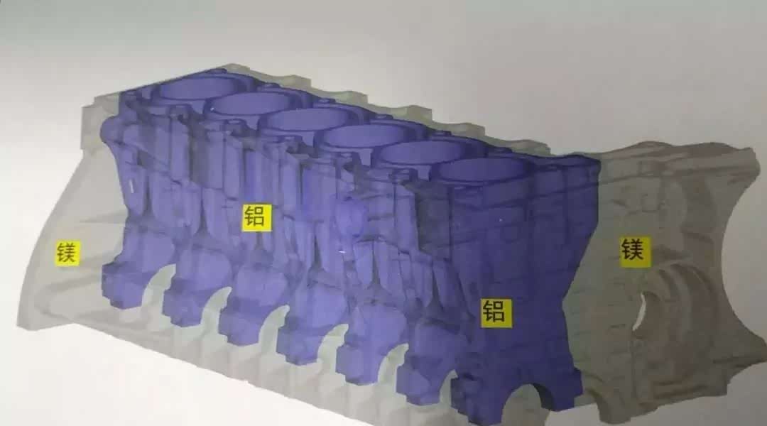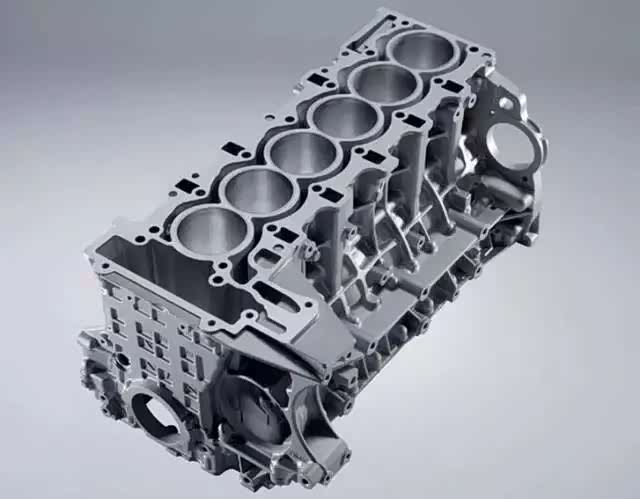 2004年,宝马在直列六缸发动机上率先引入了比铝还要轻30%的复合镁铝合金缸体。缸体是发动机中体积最大的单个部件,采用复合镁铝合金制造的缸体,它的重量只有传统铸铁缸体重量的57%,并且也比同型的全铝缸体轻24%。采用铝镁合金的发动机,其整车动力也提升了12%,并且油耗降低了大概10%左右。宝马的镁铝合金材料主要被应用在水冷缸体和气缸盖上。