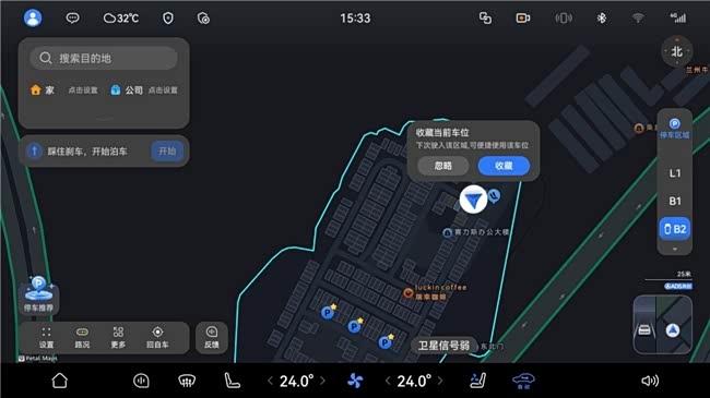 针对高频泊车场景,ADS 4系统进行了场景化深度优化。在支持的园区或地库内,车主可轻松收藏自定义车位与无标线可泊车位,下次出行时通过导航直接定位“车位级”终点,大幅节省寻位时间。更贴心的是,系统新增泊车姿记忆功能,通过设置能精准复刻用户的停靠习惯,完全按照车主偏好泊入。