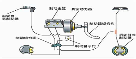 产生制动动作、控制制动效果并将制动能量传输到制动器的各个部件,以及制动轮缸和制动管路。