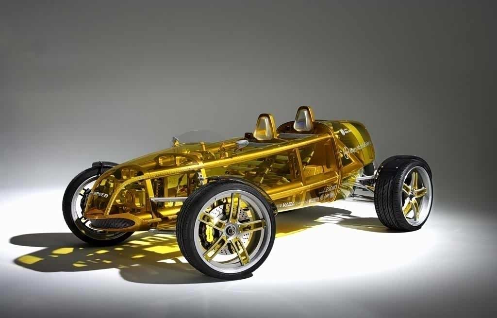 貌似透视装不仅是女明星的最爱,汽车也想秀一把。Rinspeed公司设计的这款eXasis概念车最大的亮点就是可透视的车身,而且工程塑料的车壳绝不逊色钢板。EXasis概念车最令人瞩目的是它独特的外观,它采用了最新研发的高科技透明塑胶类物料作为车身的覆盖件,配合开放式的车轮和雪茄状的前后两座的车身设计,很容易令人联想到20世纪的赛车。该车车长3700毫米,宽1960毫米,高1284毫米,由于采用了树脂骨架车身和铝合金底盘,整车重量仅为750公斤。动力系统方面,EXasis搭载了一款来自韦伯动力的750毫升机械增压双缸发动机,最大输出马力和扭矩高达150匹和150牛•米,使用生物乙醇作为燃料。与之配套使用的是一款6速手动变速箱。该车从静止加速到100公里/小时仅需4.8秒,极速可达到210公里/小时。该车前轮采用380毫米制动碟配六活塞卡钳,后轮采用355毫米制动碟配四活塞卡钳。