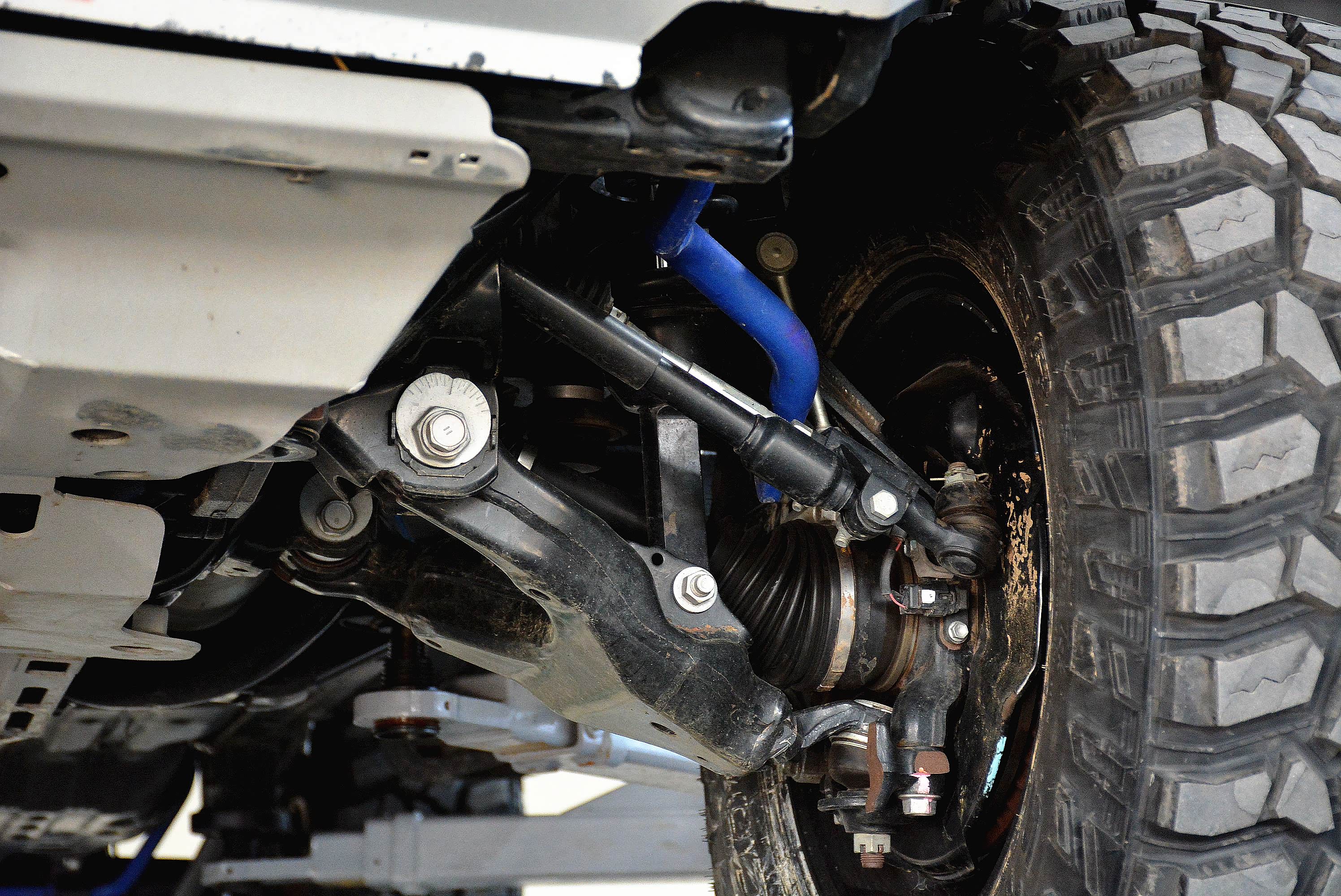 前悬挂为双叉臂独立悬挂,这种底盘类型升高2寸正合适,再高的话需要改装的地方就很多了。所以国内改装案例大部分以2寸为主。