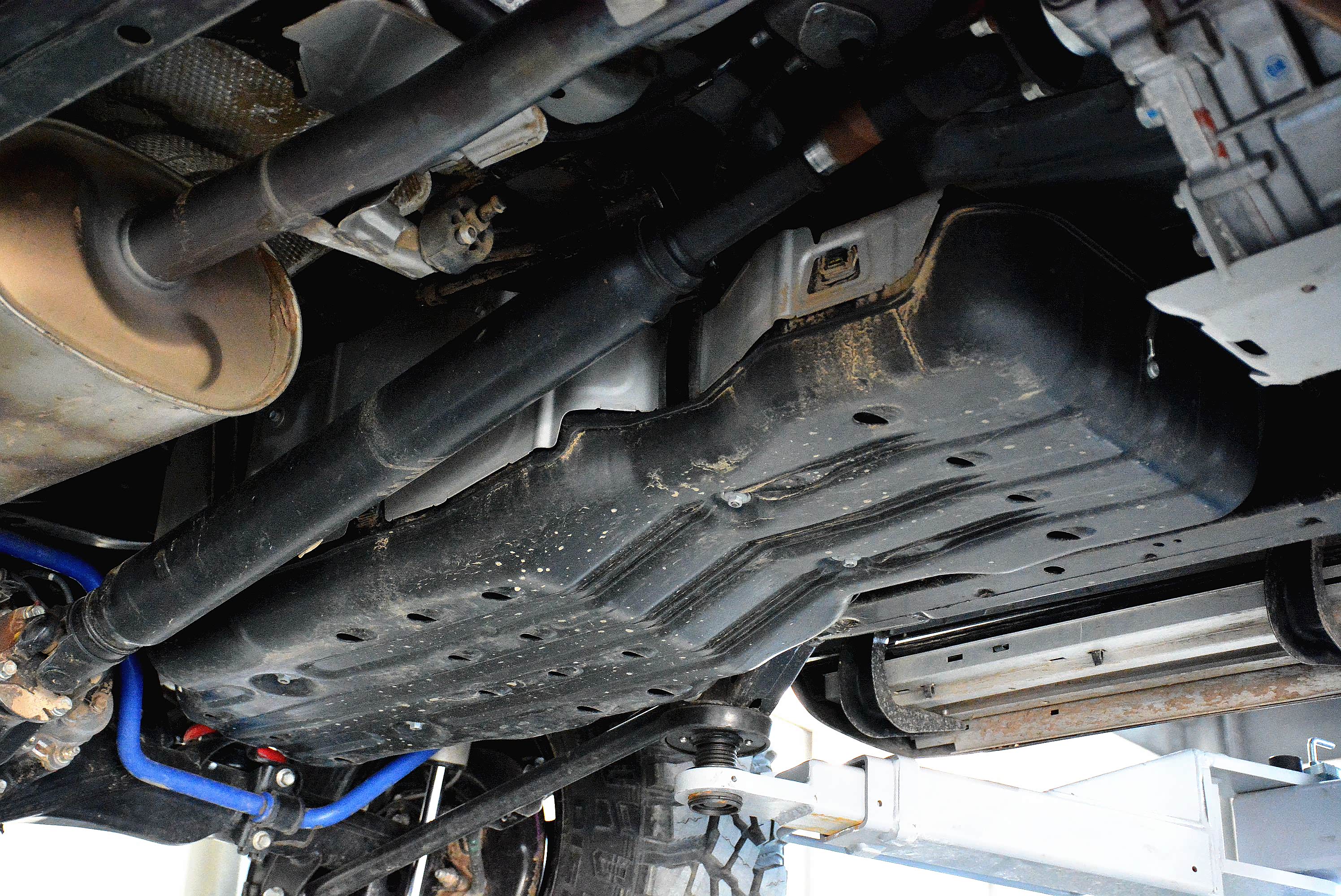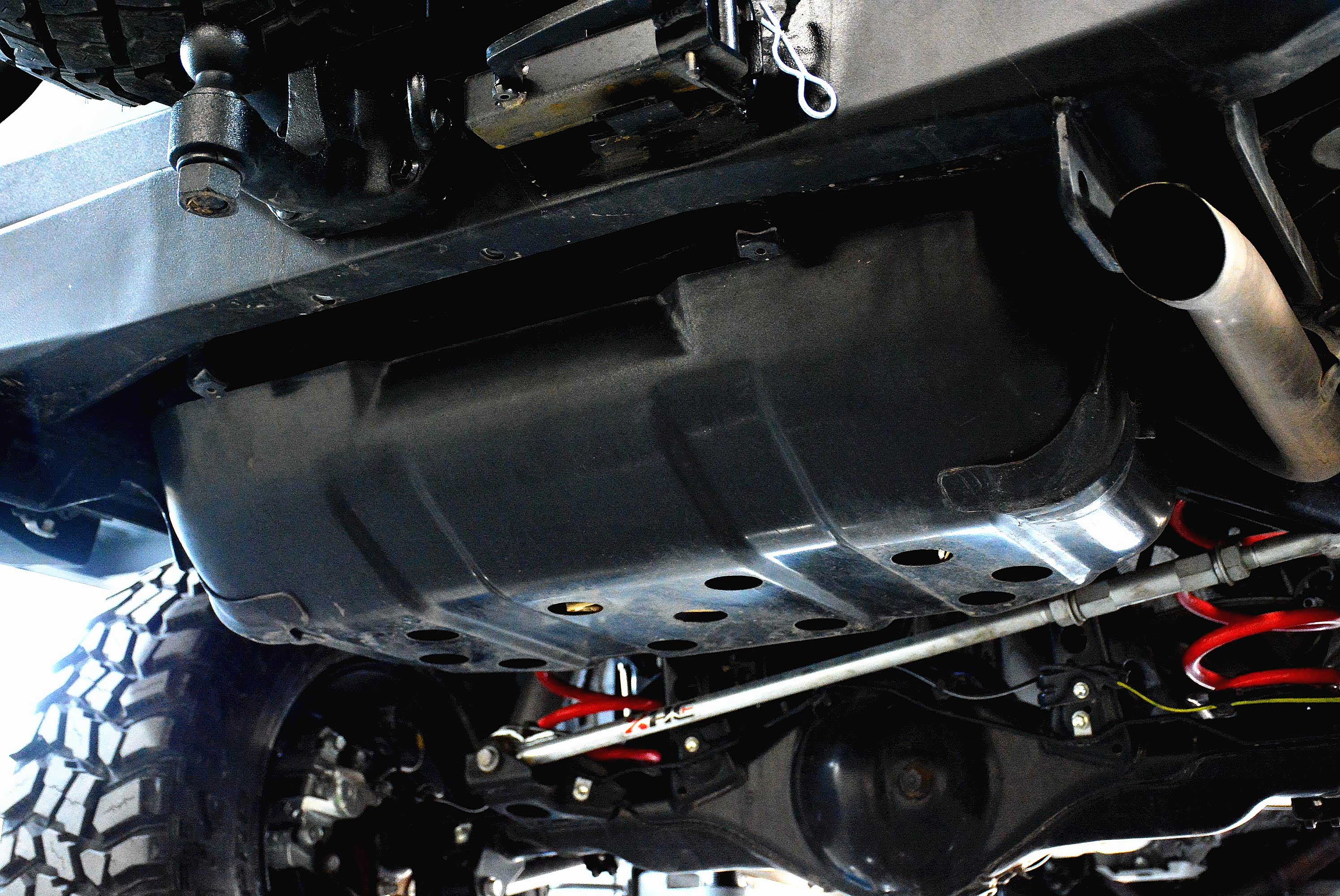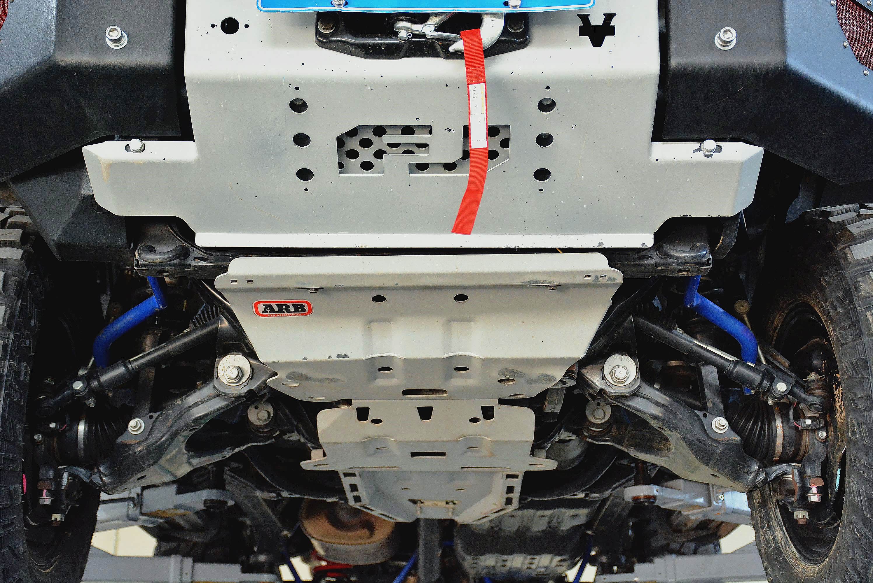 FJ的底盘护板面积很大,从前杠一直延伸到分动箱,保护的非常全面。底护板选用的是ARB的产品,质量没的说,重量确实不轻。现在有种铝合金护板,重量和质量完美结合,价格偏高。