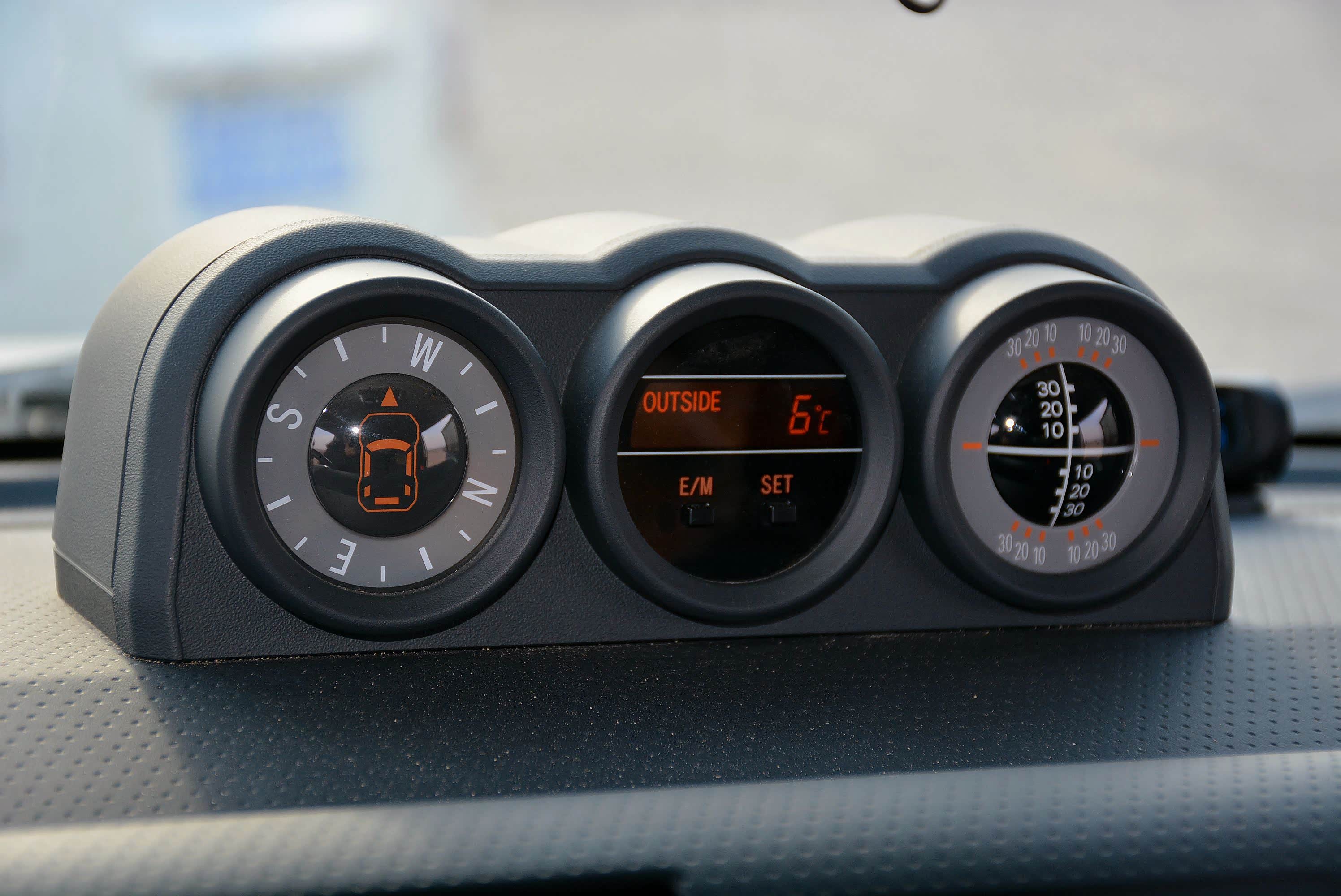 中控上面的越野组件很实用,指南针、温度、水平俯仰仪。越野车没有这些会感觉怪怪的。