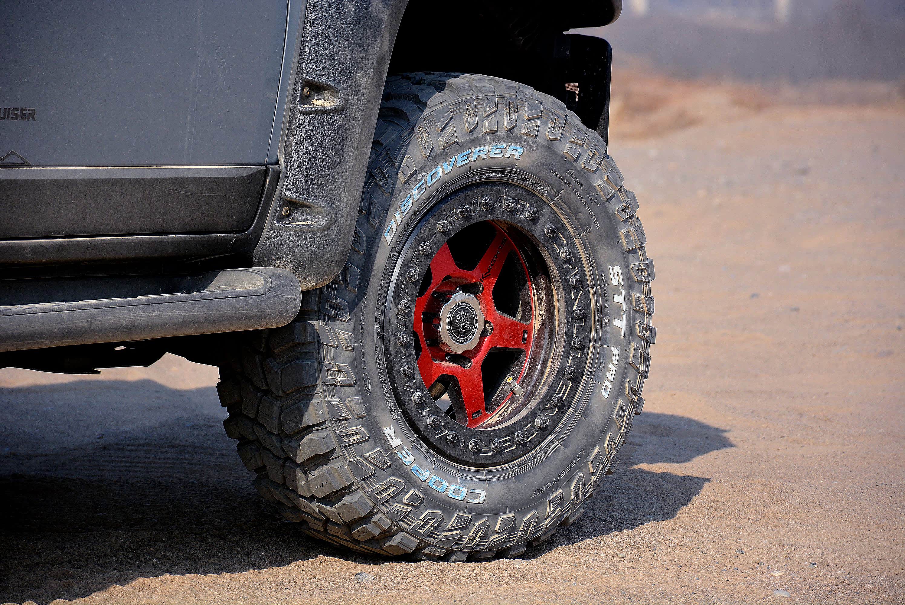 轮胎轮毂,轮胎选用固铂STT PRO民用级很专业的泥地胎,轮毂是防脱圈轮毂,既然改装了,既然会跑很多地方玩,防脱圈还是很有用的。提醒一下,防脱圈是要定期检查螺丝的哦,玩一段时间,最好自备工具检查一下。