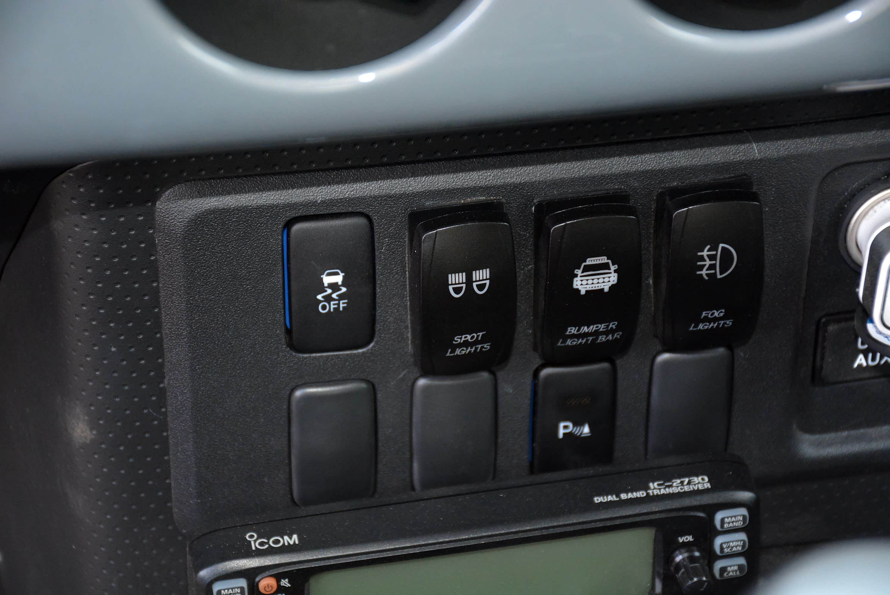在这里,预留了好多好多按键预留口,后期安装了三个翘板开关,负责车辆前后的各个射灯。