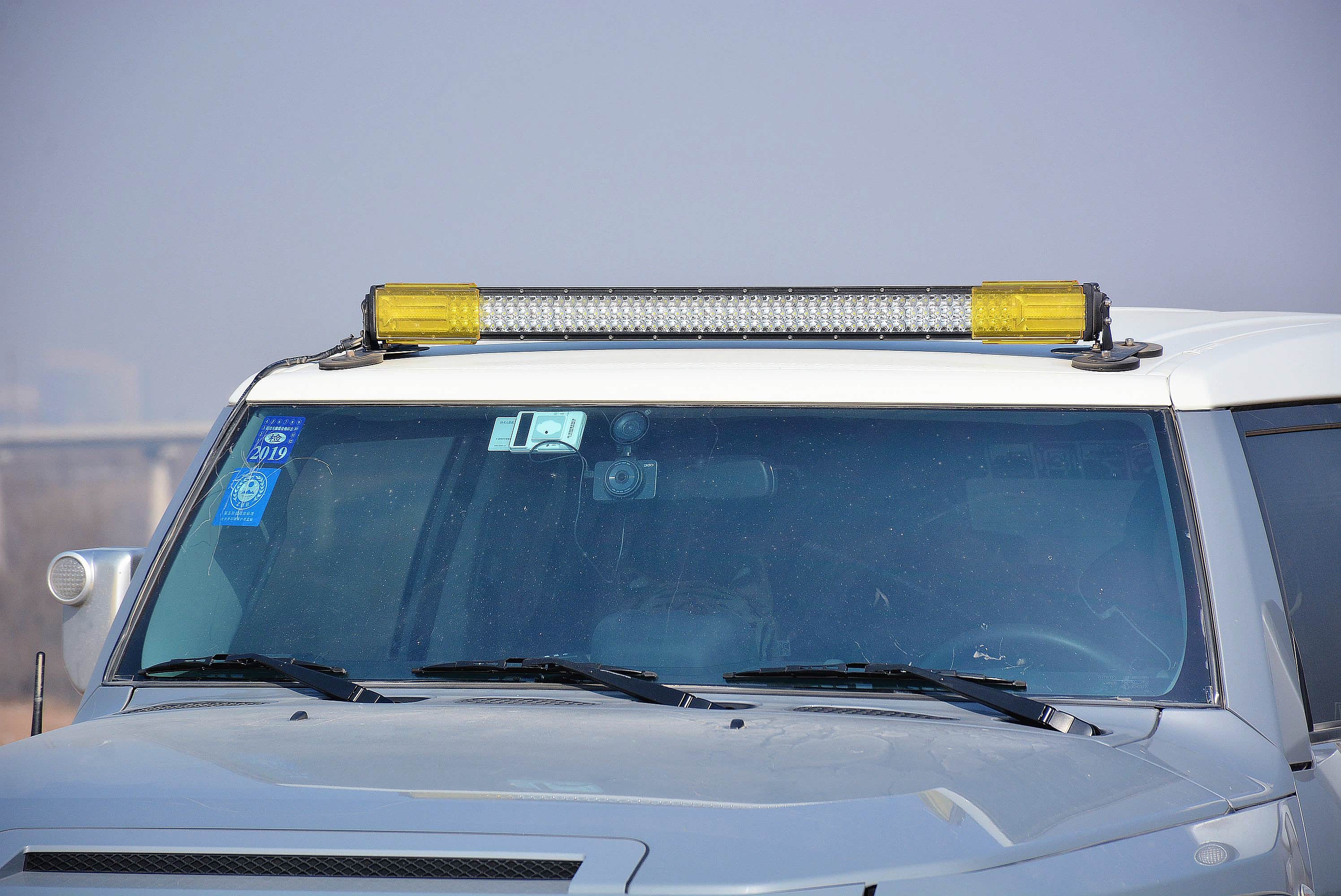 射灯安置在了车顶。用吸盘固定。好处自然是随用随装,两侧黄光穿透力强,恶劣气候下有效提升安全系数。
