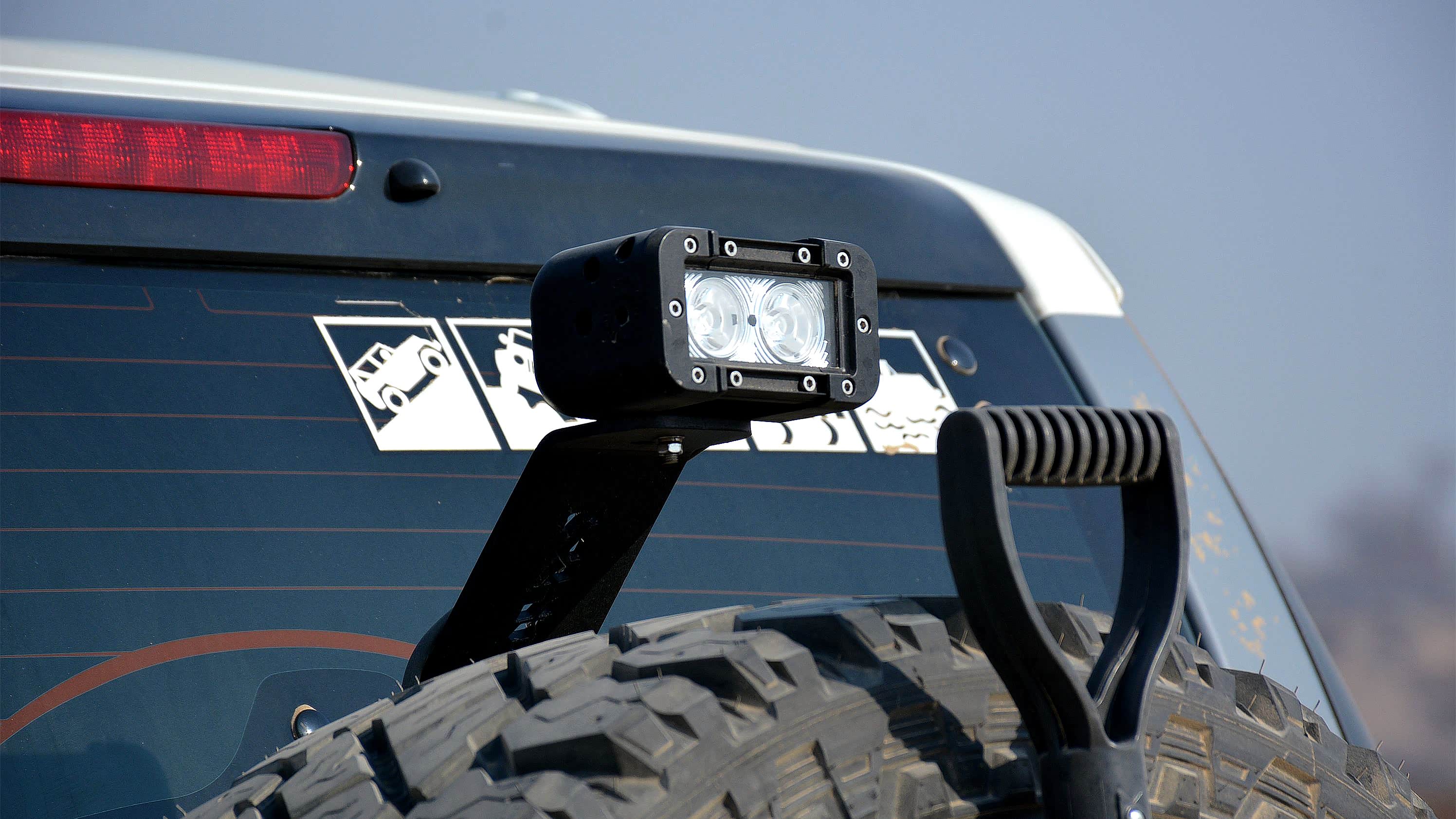后杠选用的同样是威曼带备胎架后杠,和原车贴合度非常棒,并且金属备胎架可以有效防止后尾门负重过大变形。