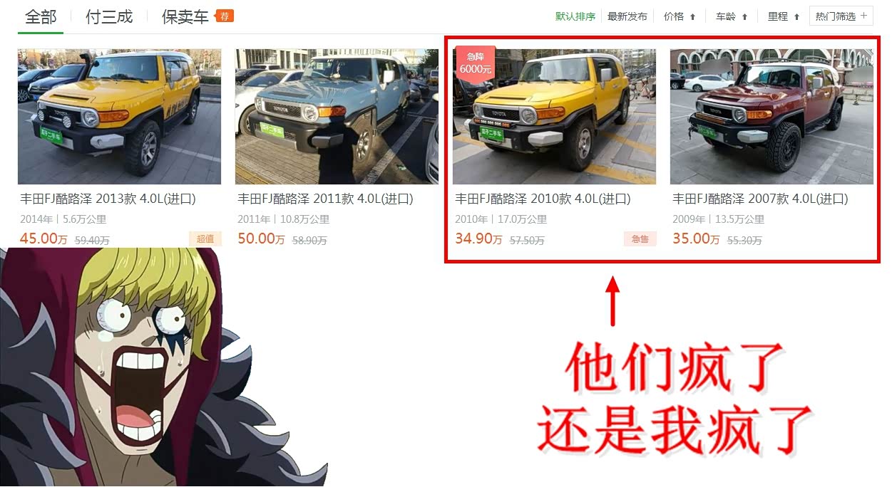 是这款车不好吗?不尽然。从越野的角度考虑,发动机皮实耐用、底盘扎实、内饰简谱、越野功能丰富,都是它的优点,但是对于不懂越野的人来说这些都是弱点。好不好用价格说话,目前二手车市场11年前后的奥迪A6,售价基本都在15~20万元之间,而目前09年的FJ依然可以卖到35万,9年车龄的车只比新车便宜10万元,谁会相信这是真的?