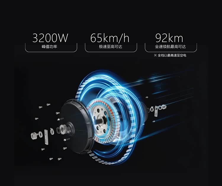 该系列车型会有三个版本分别为EV双碟版、EM双碟版、EV ABS版,其所使用的是72V32AH铅酸电池组、电机最大功率分别为2100/3200W,最高时速为47/65km/h,会有三种动力模式,全速最高续航可达92km。