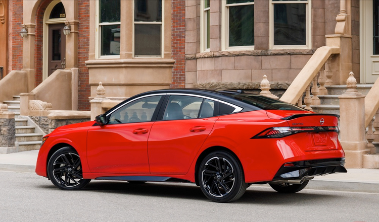 全新日产Sentra采用最新设计词汇,V-motion水箱护罩的线条延伸到灯组设计中,配上更纤细的LED头灯,让整体更为大胆前卫。高配车型的LED头灯则在熄灭时呈现黑色,增添神秘感。车尾采用斜背设计,结合贯穿式尾灯和弧形后保险杠,提升了整体运动感。